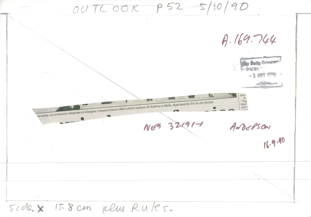 Glasgow: Royal Concert Hall: An Orchestra rehearses at Glasgow's Royal Concert Hall which replaces St. Andrew's Halls, destroyed by fire in the sixties. Glasgow: Royal Concert Hall: An Orchestra rehearses at Glasgow's Royal Concert Hall which replaces St. Andrew's Halls, destroyed by fire in the sixties.