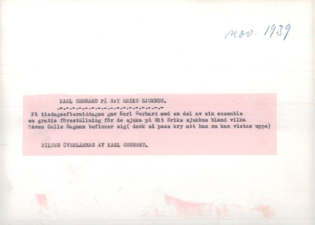 Karl Gerhard gives a free concert at St. Eriks Hospital - Vintage Photograph