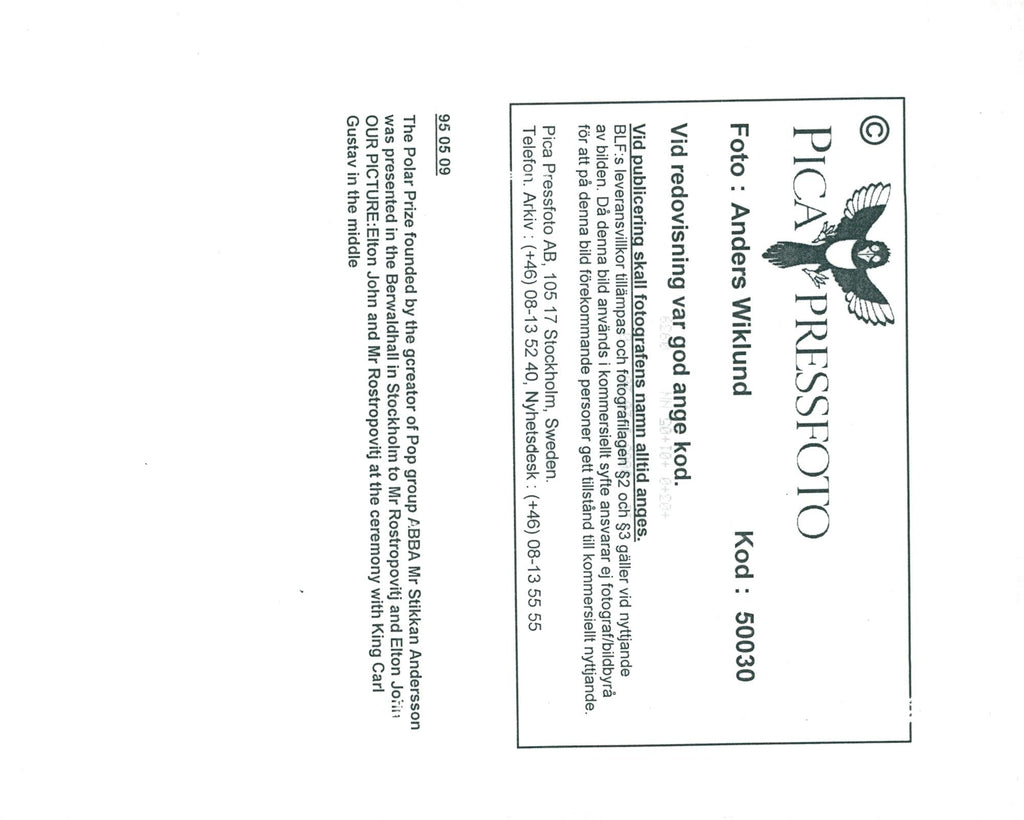 King Carl XVI Gustaf flanked by the two Polar Prize winners Mstislav Rostropovitj and Elton John at the Berwald Hall Elton John Artist, England, UK, Misc, Musician, Pianist, Composer, Singer, Pop, Rock, British