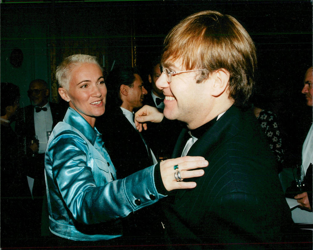 Marie Fredriksson, actually Gun-Marie Bolyos, born Fredriksson May 30, 1958 in East Ljungby in Skåne, is a Swedish singer and songwriter. In 1986 she formed the Swedish pop duo Roxette together with Per Gessle. Marie Fredriksson and Elton John.