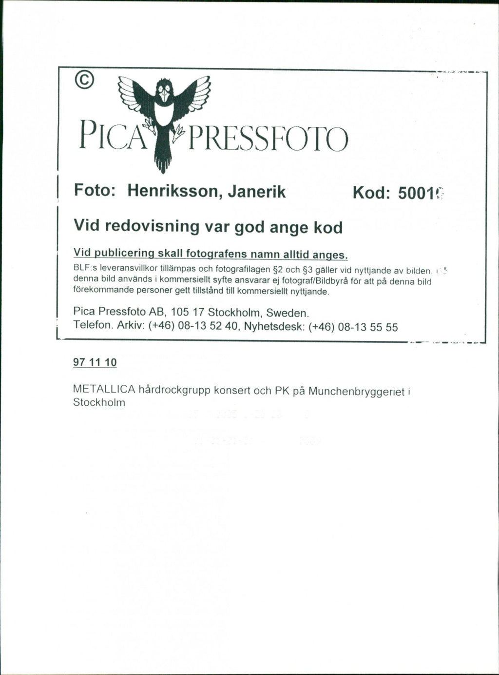 Metallica hard rock group concert - Vintage Photograph
