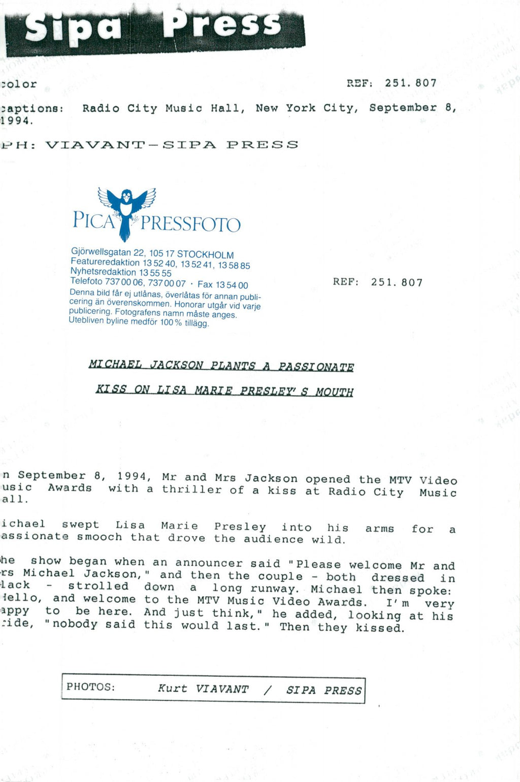 All our press photos are LIMITED ARCHIVE ORIGINALS - they are the actual prints that were used by the newspapers, they are not reprints or digital prints produced by us. All the prints are at least 30 years old and up to 100 years old.