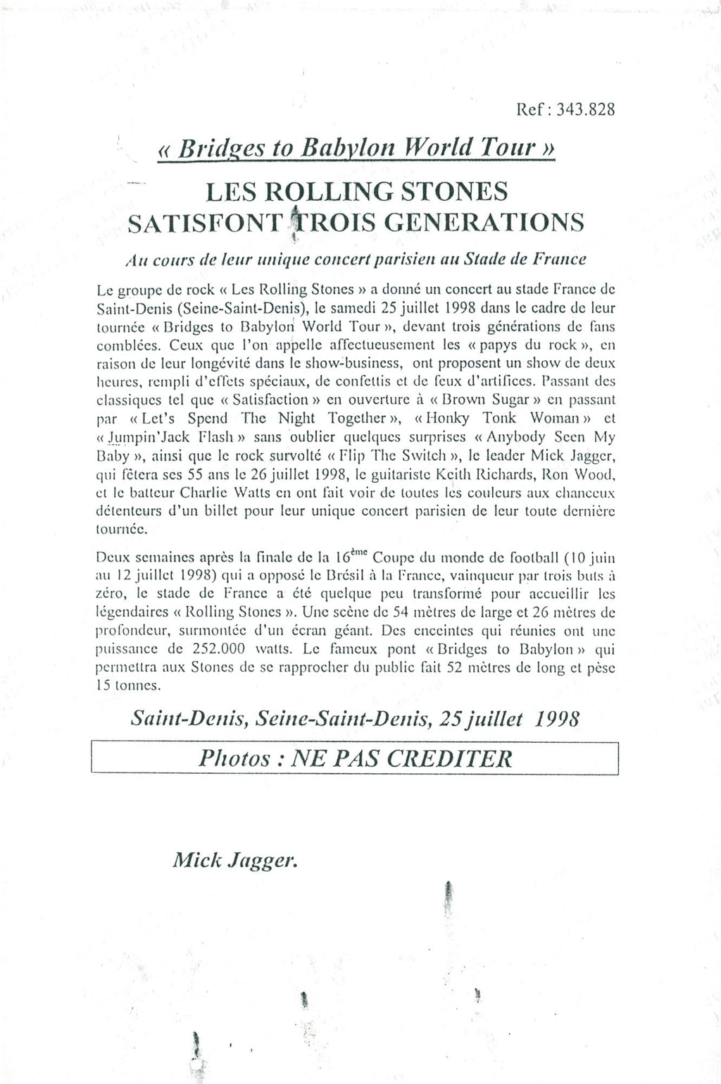 Mick Jagger during The Rolling Stones concert at Stade de France - Vintage Photograph