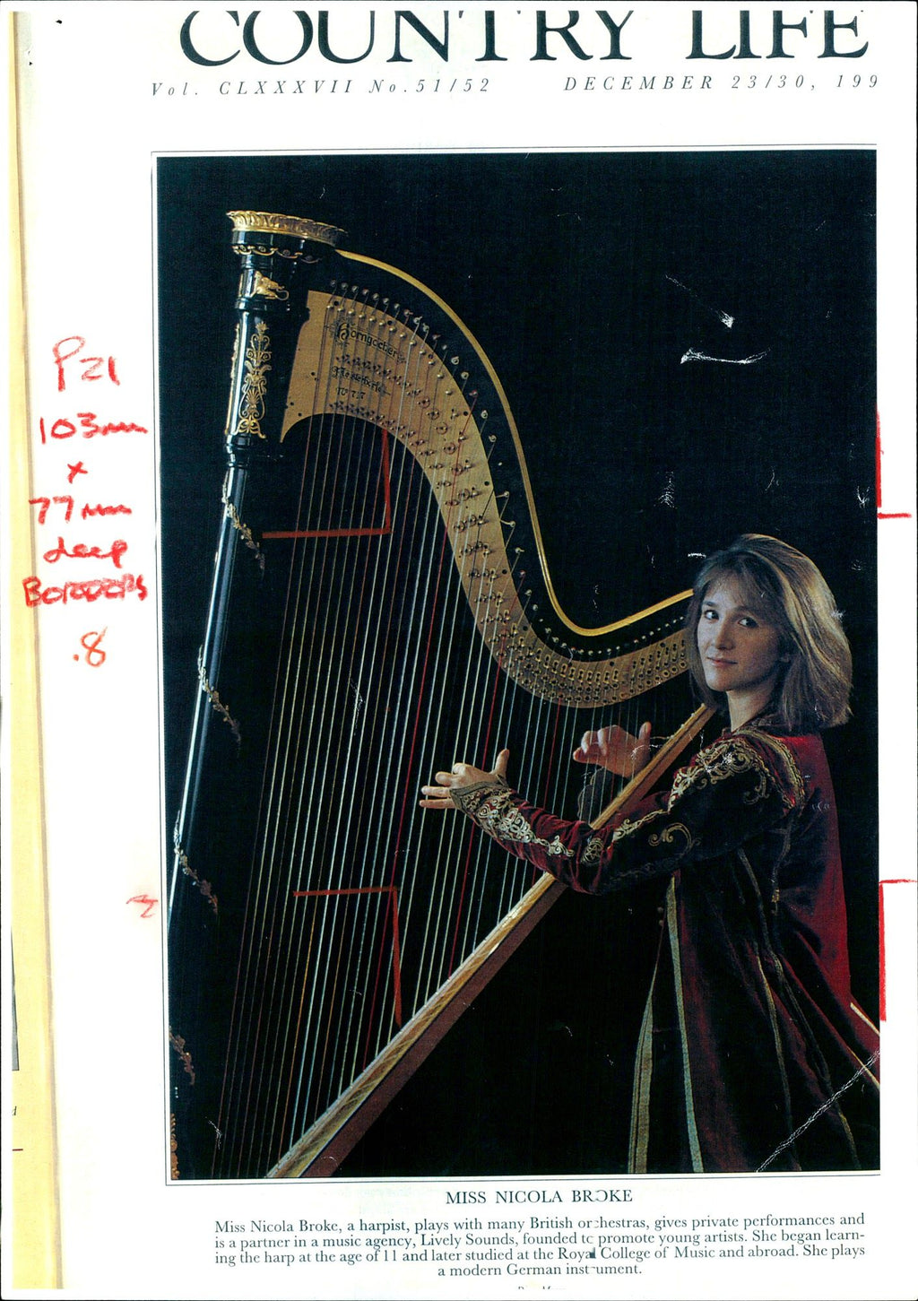 Miss Nicola Broke is a harpist who plays with many British orchestras. She is partner in a music agency Lively Sounds, founded to promote young artists. She began learn a modern German instrument . the harp at the of 11 and later studied at the Royal College of Music and abroad. Miss Nicola Broke is a harpist who plays with many British orchestras. She is partner in a music agency Lively Sounds, founded to promote young artists. She began learn a modern German instrument . the harp at the of 11 and later studied at the Royal College of Music and abroad.