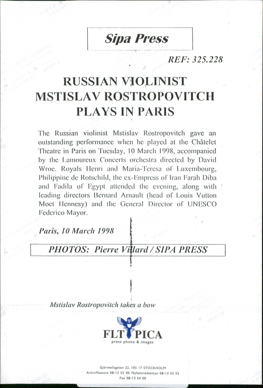 Mstislav Rostropovitj after a concert in Paris Mstislav Rostropovitj, cellist, conductor