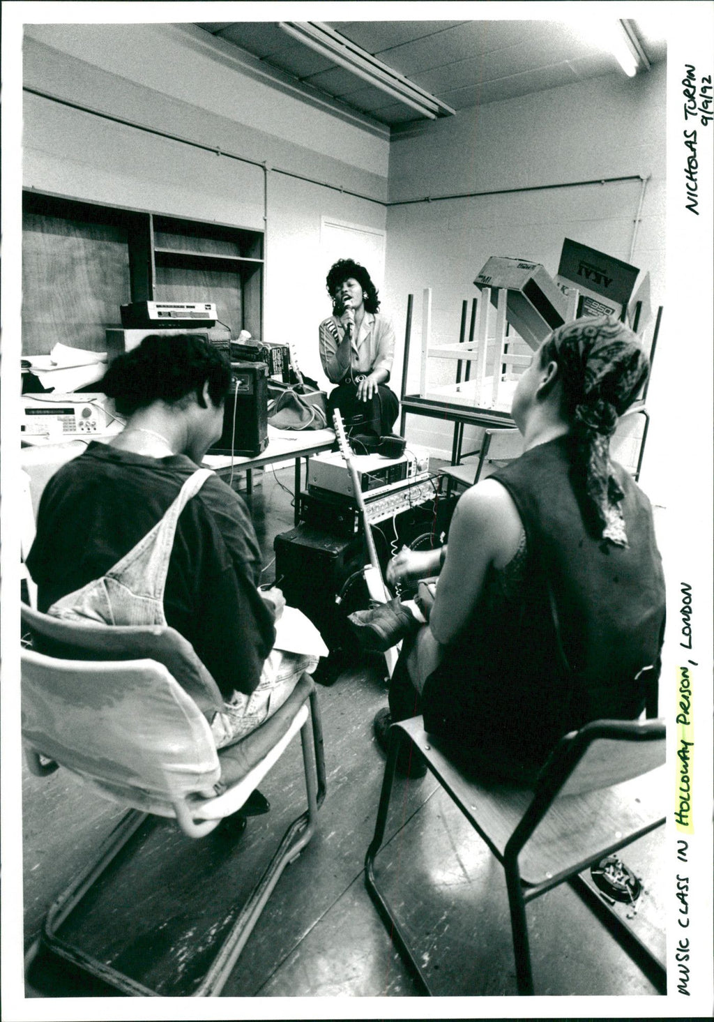 Prisoners in music class in Holloway Prison, London - Vintage Photograph
