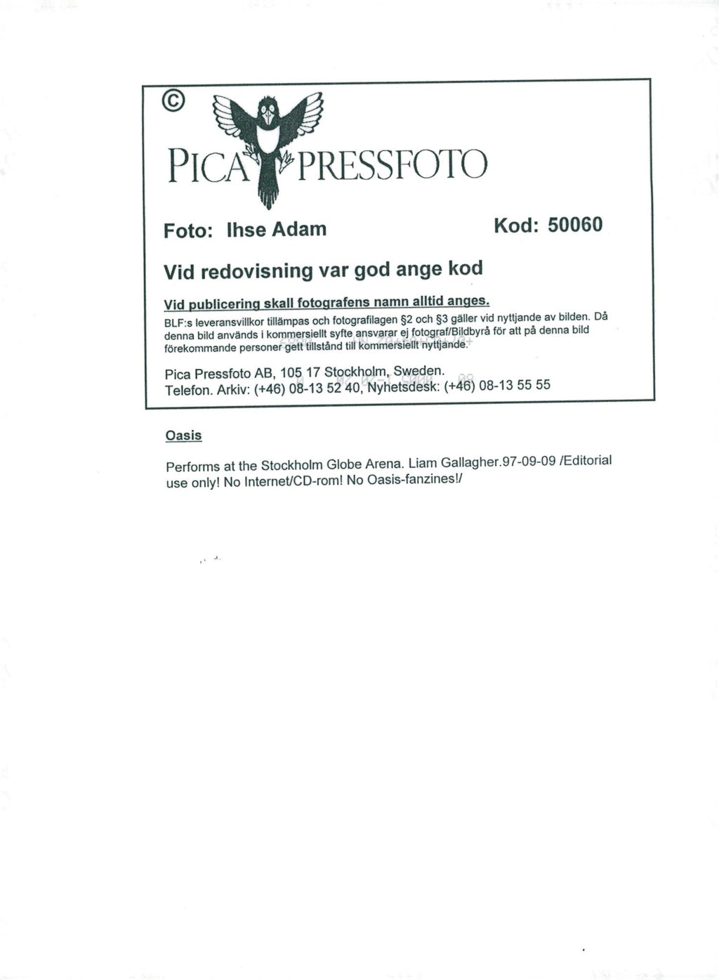 Rock group Oasis member, Liam Gallanger, rock the stage during the group's concert in Globen. - Vintage Photograph