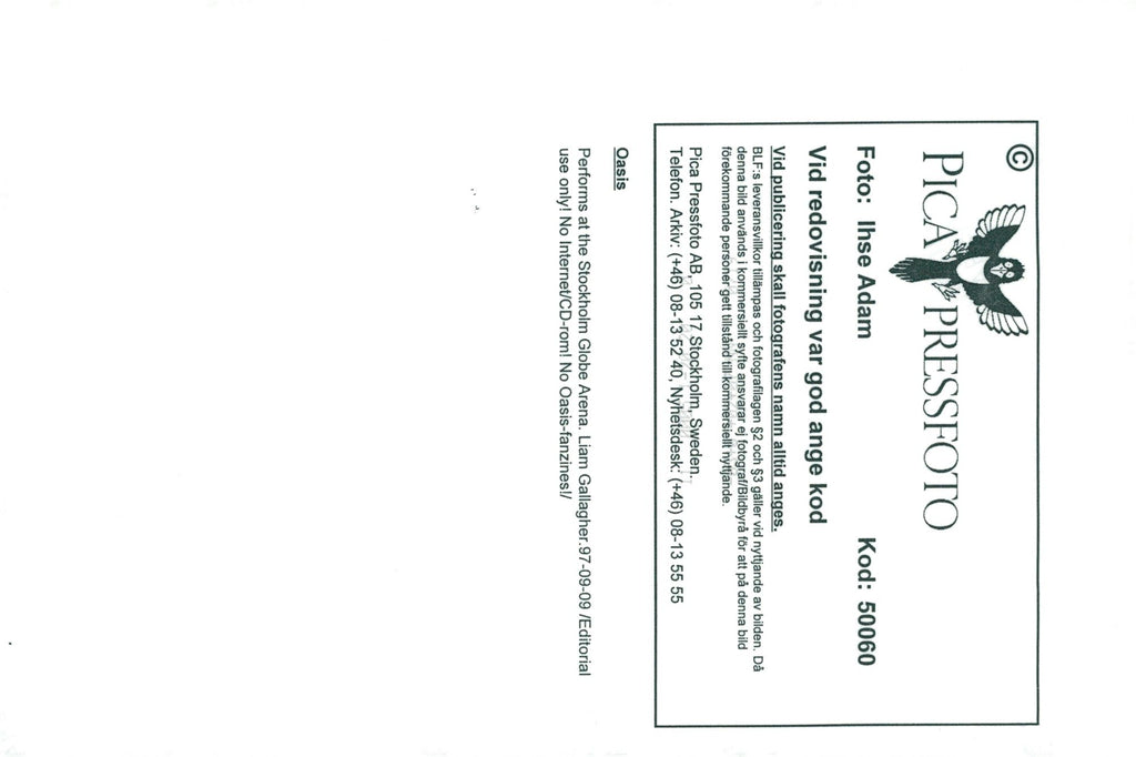 Rock group Oasis member, Liam Gallanger, rock the stage during the group's concert in Globen. - Vintage Photograph