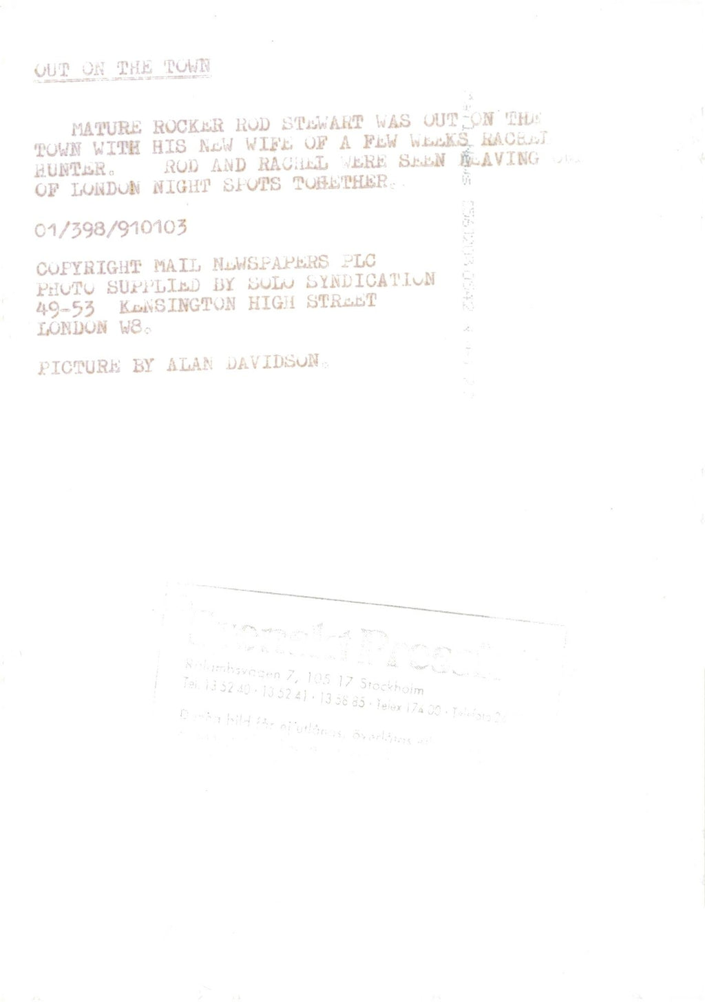 Rod Stewart and Rachel Hunter out in town - Vintage Photograph
