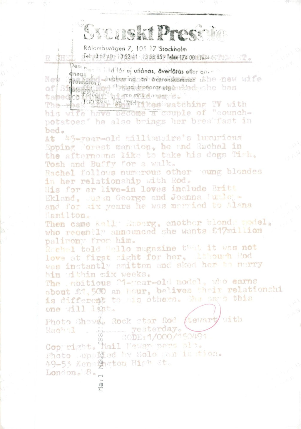 Rod Stewart and Rachel Hunter - Vintage Photograph
