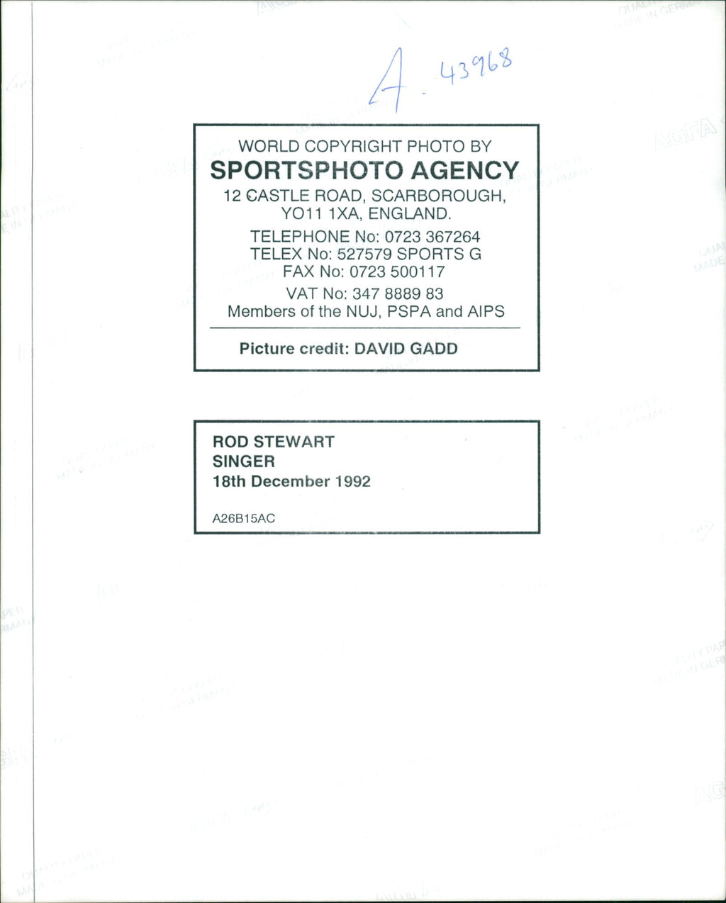 All the original vintage images are sold without watermarks. The prints are all over 30 years old and have been in the storage of the newspapers for decades. We sell them in the same conditions they were given to us by the archives.