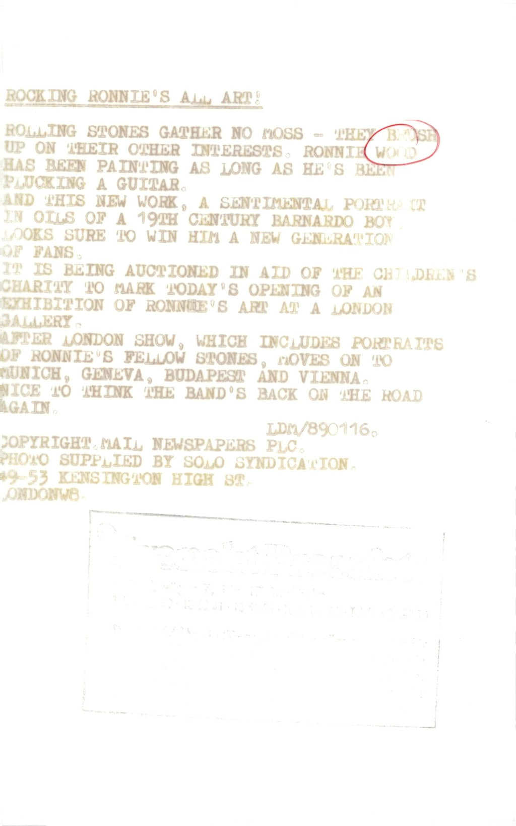 Ronald David "Ronnie" Wood, born June 1, 1947 in Hillingdon, Greater London, is a British guitarist, bassist and artist.