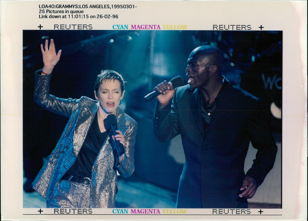 Annie Lennox (L) and Seal perform a tribute to Marvin Gaye, singing "what Going on," at the 38th Annual Grammy Awards February 28 in Los Angeles. Annie Lennox (L) and Seal perform a tribute to Marvin Gaye, singing "what Going on," at the 38th Annual Grammy Awards February 28 in Los Angeles.