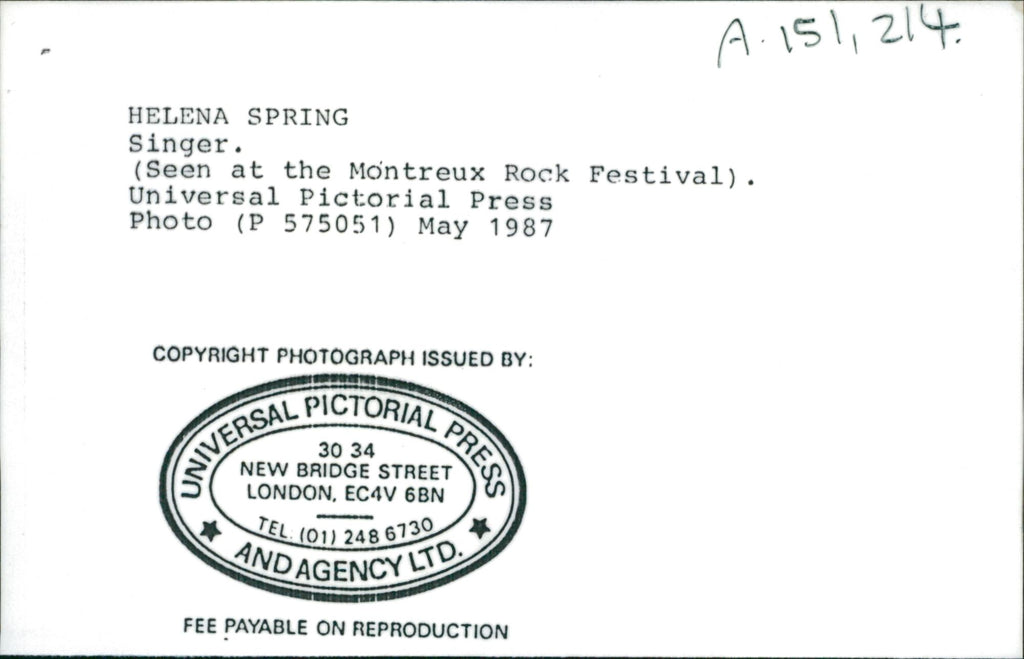 Singer Helena Spring at the Montreux Rock Festival - Vintage Photograph