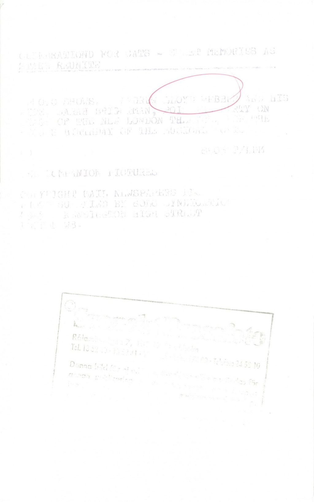 Singer Sarah Brightman and composer Andrew Lloyd Webber on stage at the musical Cats 8th anniversary at the New London Theater Andrew, Julian, Llloyd, Webber, Composer, Musician, Musical, Theater, Movie, Writer, Sir, Broadway