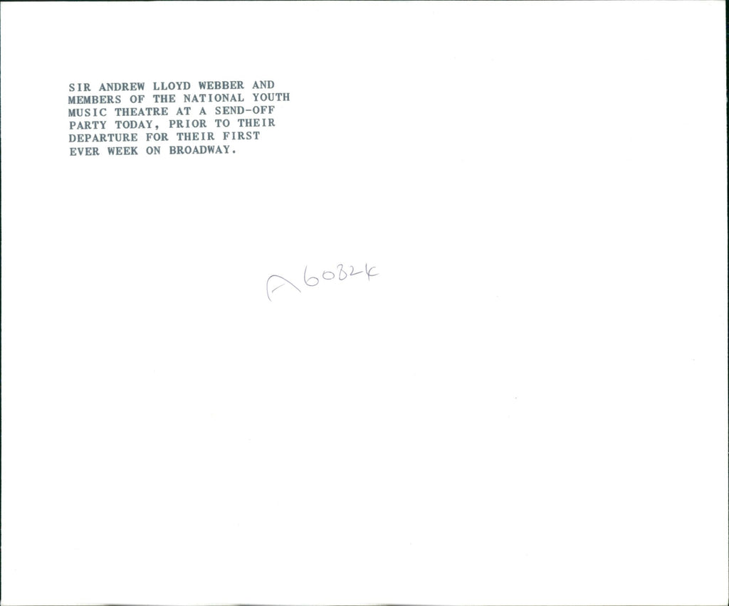 Sir Andrew Lloyd webber and members of the national youth music theatre at a send off party today. - Vintage Photograph