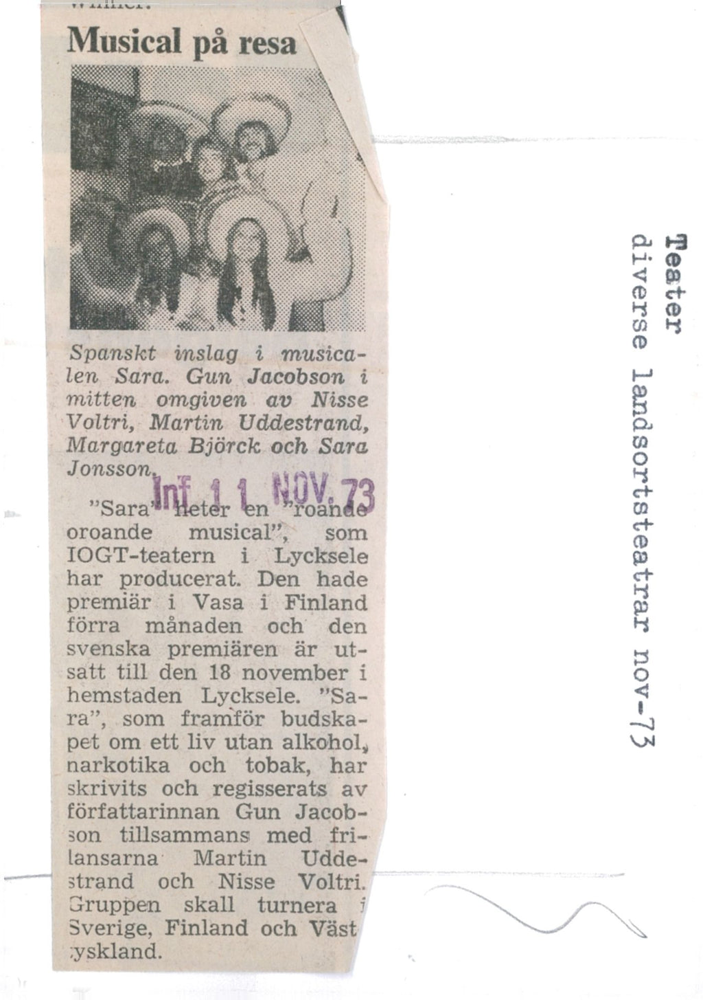 Spanish element in the musical "Sara" with Gun Jacobson, Nisse Voltri, Martin Uddestrand, Margareta Björck and Sara Jonsson. - Vintage Photograph