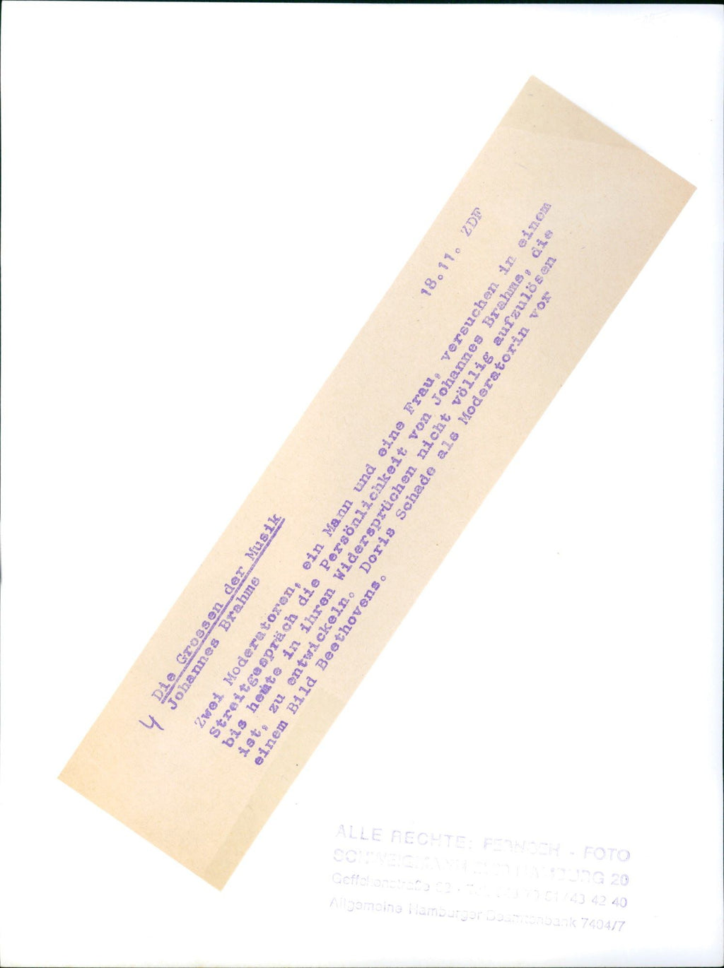 "The greats of music - Johannes Brahms" TV series - Vintage Photograph