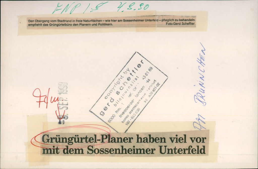 1950 GRUNGURTELBURO RECOMMENDS PLANNERS AND POLITICI Den Übergang vom Stadtrand in freie Naturflächen - wie hier am Sossenheimer Unterfeld - pfleglich zu behandeln empfiehlt das Grüngürtelbüro den Planern und Politikern.