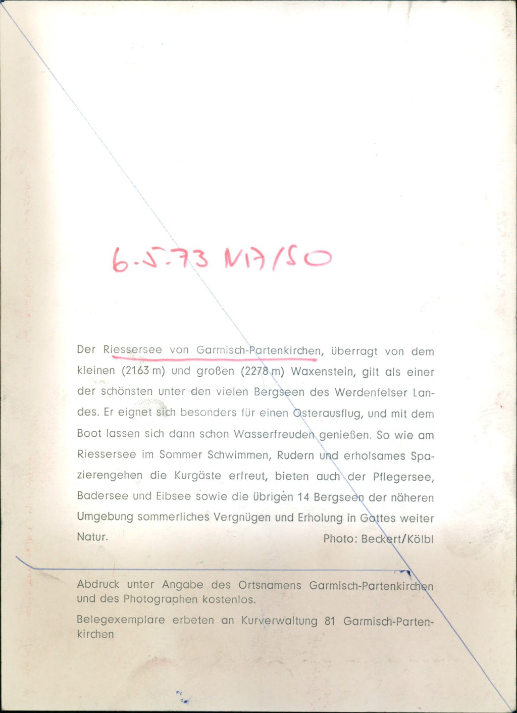 1973 RIESSERSEE GARMISCH PARTENKIRCHEN SURMOUNTED SMALL AND GROEN Der Riessersee von Garmisch-Partenkirchen, überragt von dem kleinen (2163 m) und großen (2278 m) Waxenstein, gilt als einer der schönsten unter den vielen Bergseen des Werdenfelser Landes.