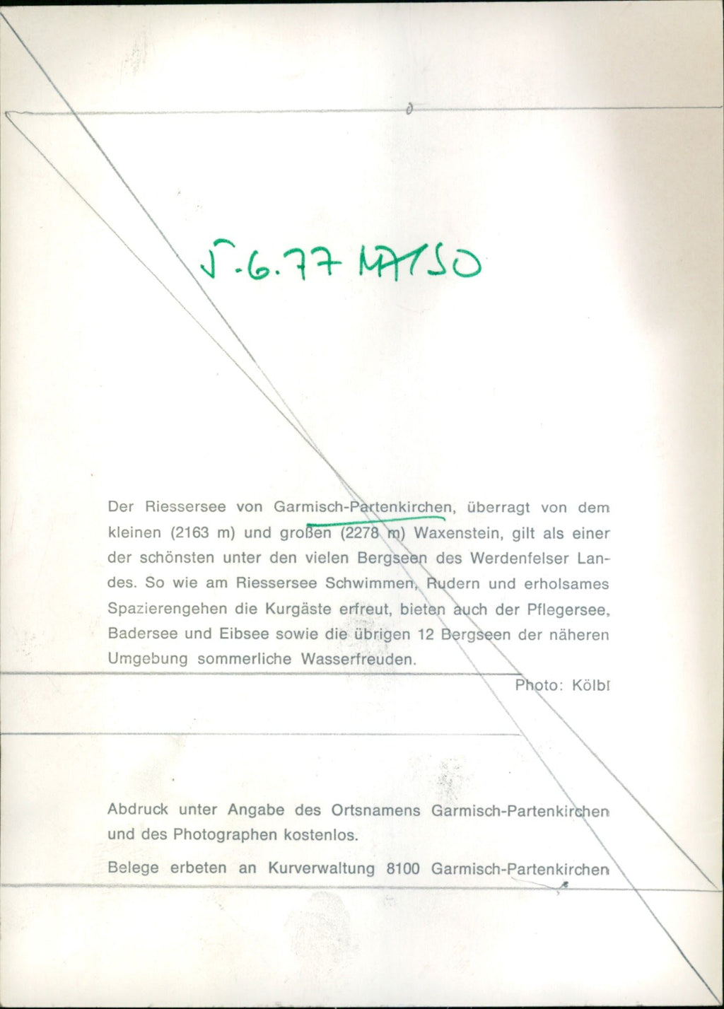 1977 PARTENIA LAKE RIESSER GARMISCH PARTENKIRCHEN SURMOUNTED SMALL Der Riessersee von Garmisch-Partenkirchen, überragt von dem kleinen (2163 m) und großen (2278 m) Waxenstein, gilt als einer der schönsten unter den vielen Bergseen des Werdenfelser Landes.