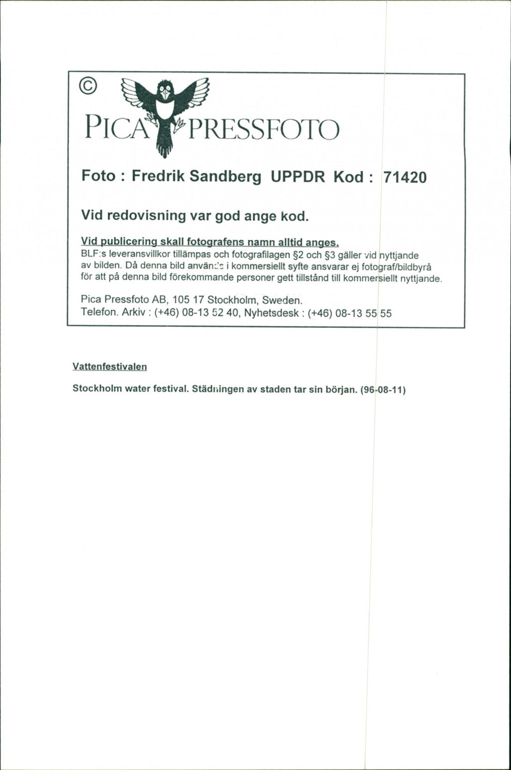 1996 LANDSCAPE ARLA NMJOLK TELEPHONE SWEDEN FESTIVAL - Vintage Photograph