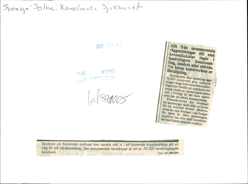 Visitors to Karolinska Hospital can walk straight into a lush rock landscape on their way to the right care department. The monumental landscape is one of 70000 county councils' works of art. The Karolinska University Hospital is a teaching hospital affiliated with Karolinska Institutet.