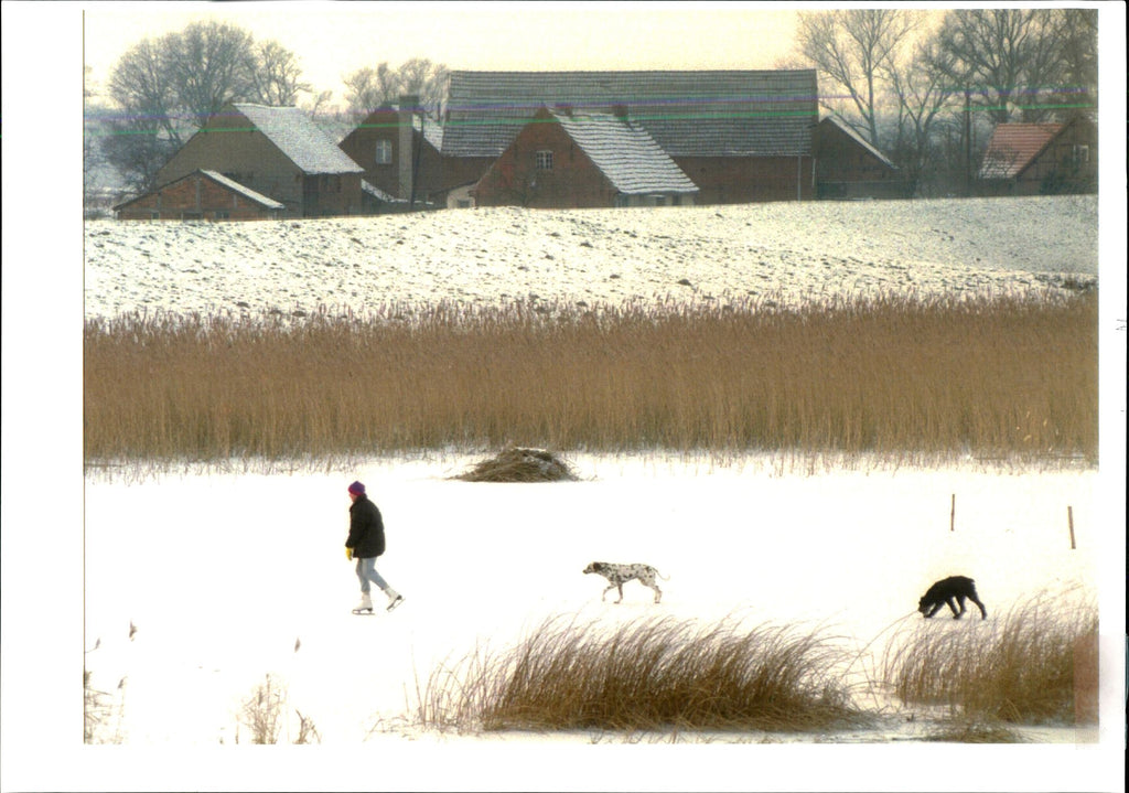 A person with two dogs. - Vintage Photograph
