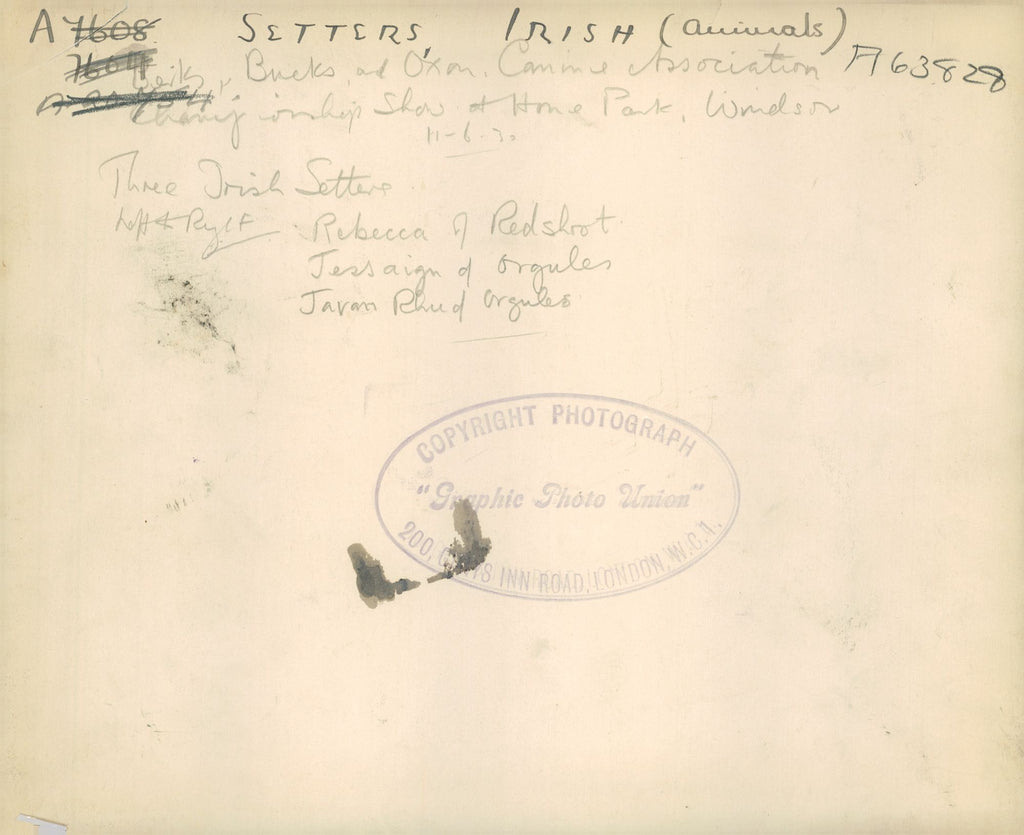 Dogs: English Setter: From left to right: Rebecca of Redshoot, Jessaign of Orgules and Javan Rhud of Orgules during the Bucks and Oxan Canine Association Show at Home Park, Windsor. Dogs: English Setter: From left to right: Rebecca of Redshoot, Jessaign of Orgules and Javan Rhud of Orgules during the Bucks and Oxan Canine Association Show at Home Park, Windsor.