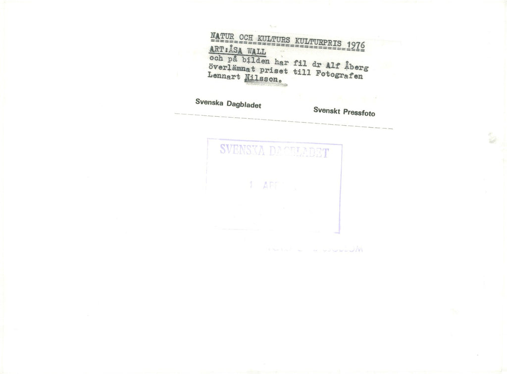 Dr Alf Åberg has left Nature & Culture & # 39; s cultural award to photographer Lennart Nilsson. - Vintage Photograph