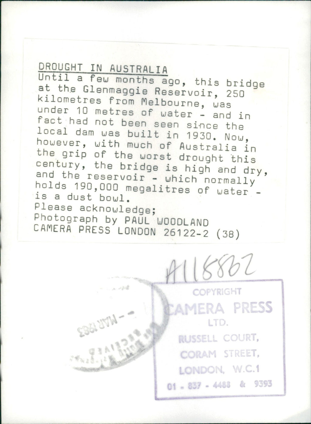 All our press photos are LIMITED ARCHIVE ORIGINALS - they are the actual prints that were used by the newspapers, they are not reprints or digital prints produced by us. All the prints are at least 30 years old and up to 100 years old.
