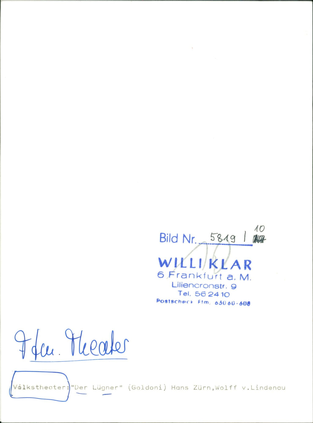 FOLK THEATER THEATER PIECES IMAGE WILLIKLAR FRANKFURT LILIENCRON - Vintage Photograph
