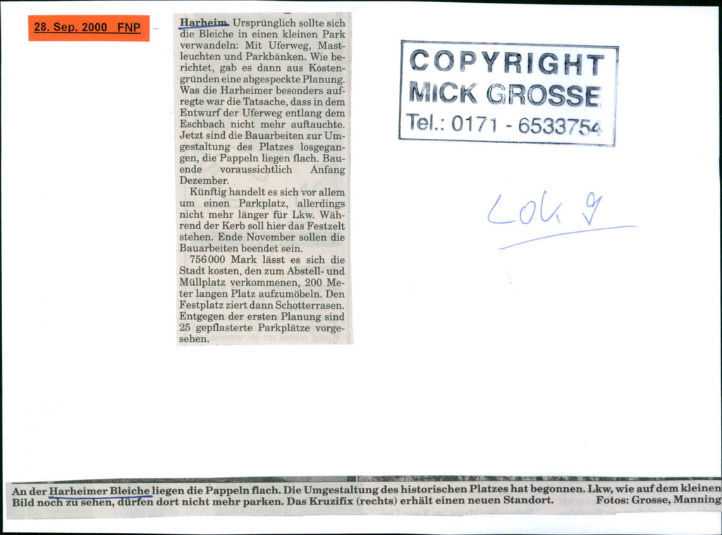 The poplars lie flat on the Harheimer bleach. The transformation of the historic square has begun. An der Harheimer Bleiche liegen die Pappeln flach. Die Umgestaltung des historischen Platzes hat begonnen.
