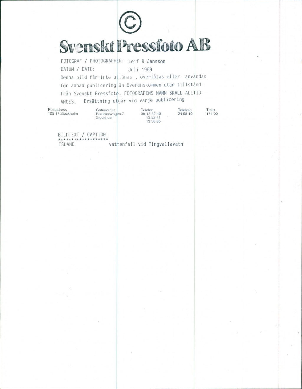 Island, waterfall at Tingvallavatn - Vintage Photograph