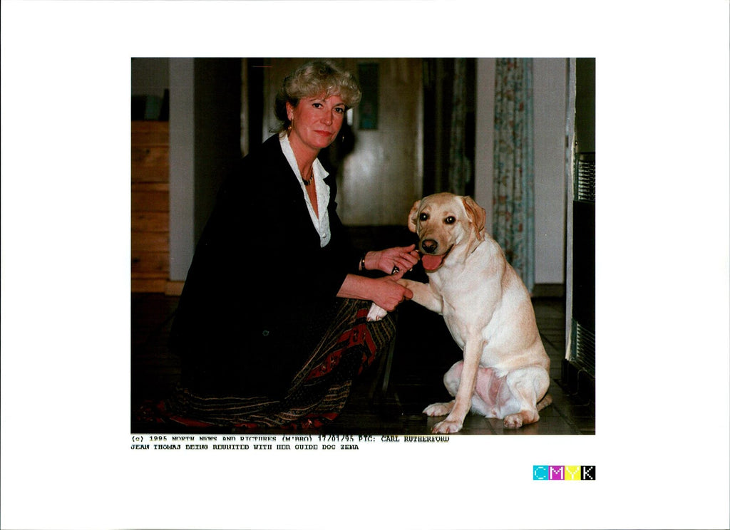 Jean Thomas, being reunited with her guide dog Zena. Jean Thomas, being reunited with her guide dog Zena.