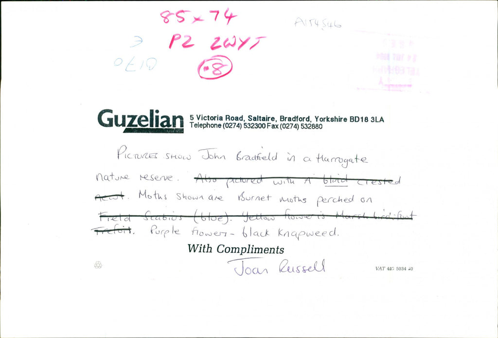 John Bradfield in Harrogate nature resene. Also pictured with A blind tested Motus. Shown are Burnet moths perched on Freta Seatior toed. Purple flower black knapweed . With Compliments Joan Russell VAT 4 B034 0. John Bradfield in Harrogate nature resene. Also pictured with A blind tested Motus. Shown are Burnet moths perched on Freta Seatior toed. Purple flower black knapweed . With Compliments Joan Russell VAT 4 B034 0.