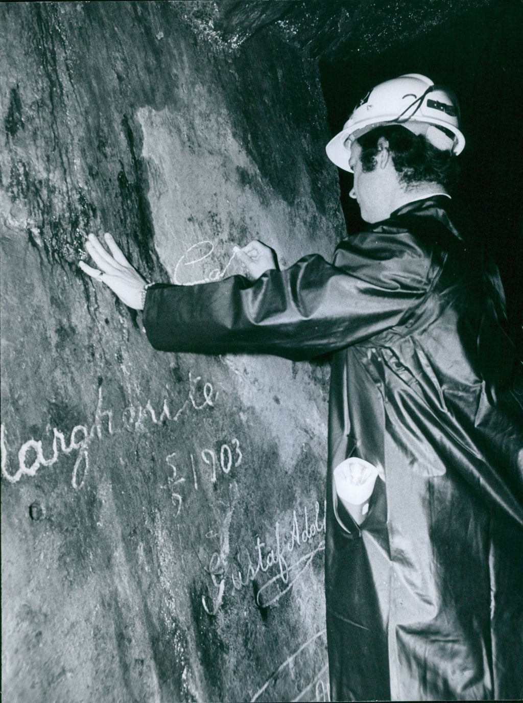 King Carl XVI Gustaf writes signature in rock wall - Vintage Photograph