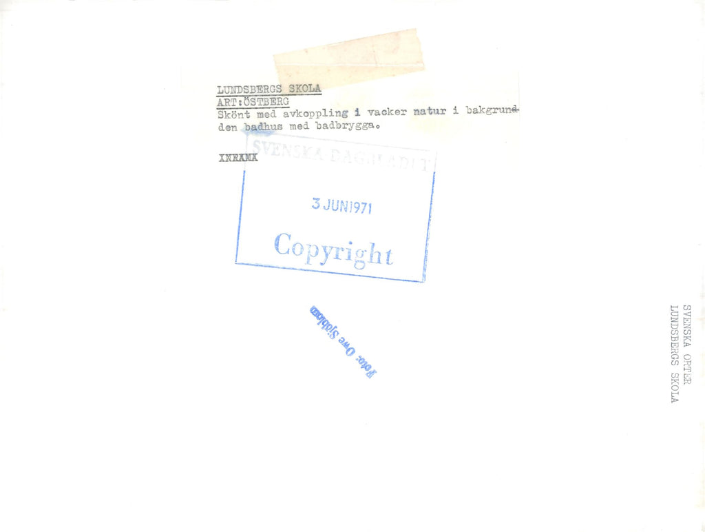 Lundsbergs school. Nice with relaxation in beautiful nature. In the background bath house with bathing jetty - Vintage Photograph