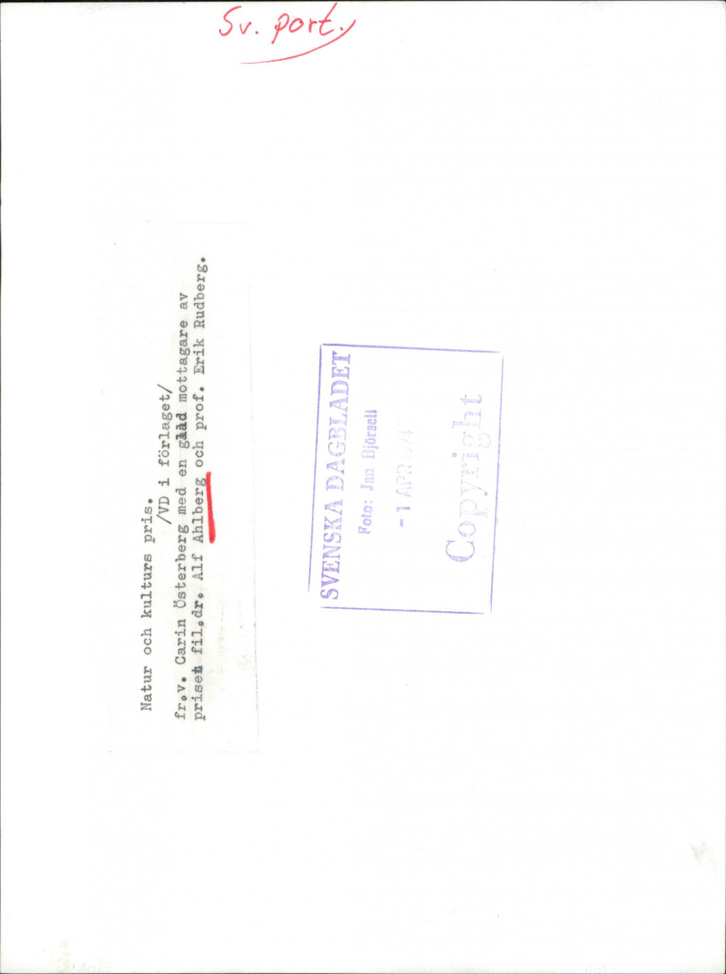 Nature and Culture award awarded, happy mines to Alf Ahlberg, Carin Österberg and Erik Rudberg - Vintage Photograph