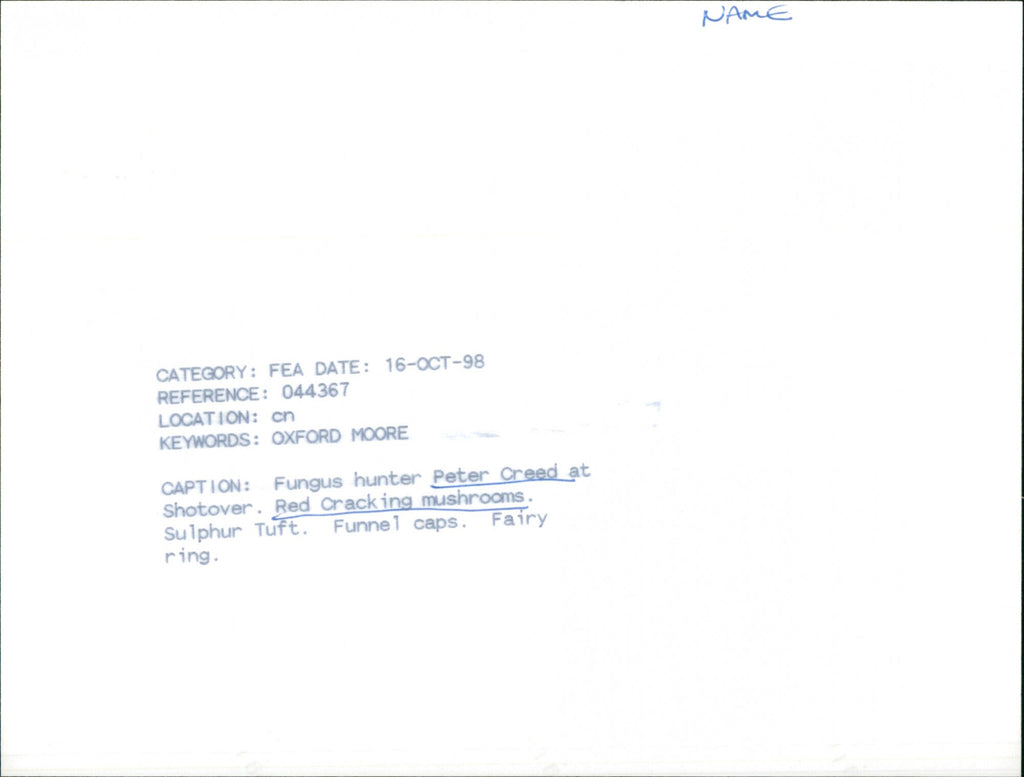 Fungus hunter Peter Creed at Shotover. Red Cracking mushrooms. Fungus hunter Peter Creed at Shotover. Red Cracking mushrooms.