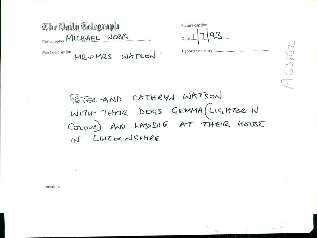Peter and Cathryn Watson with their dogs Gemma and Laddie. - Vintage Photograph
