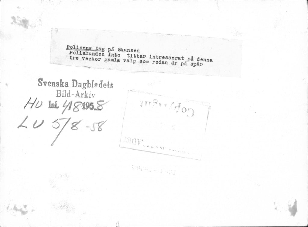 Police Day at Skansen. Police Dog Into is watching puppy - Vintage Photograph