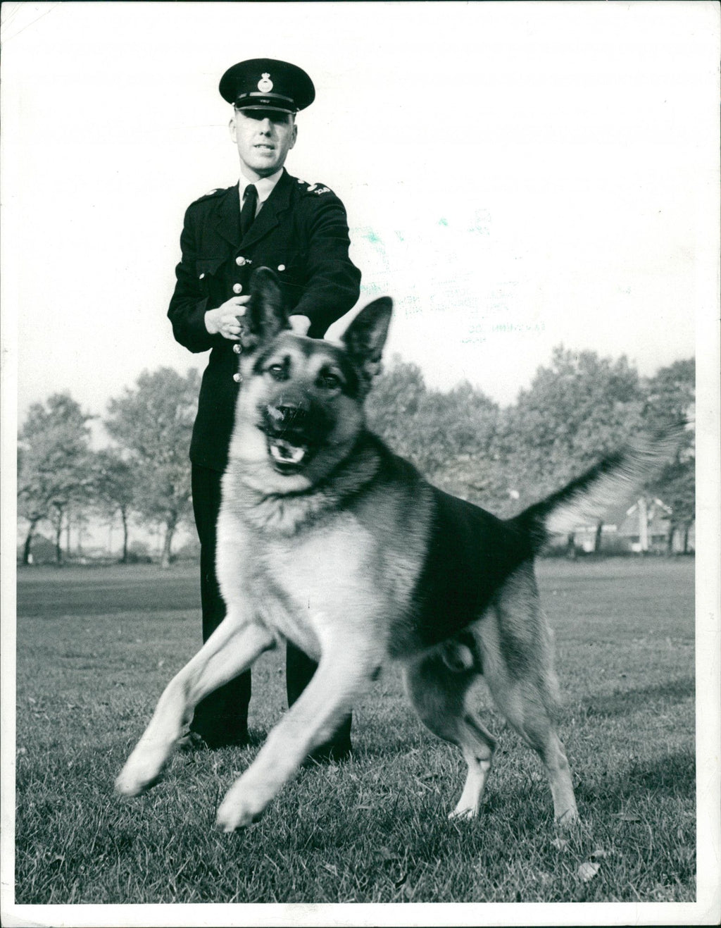 Police dog Rex, with his handler Police Derrick Pimtott, greets the cameraman Police dog Rex, with his handler Police Derrick Pimtott, greets the cameraman