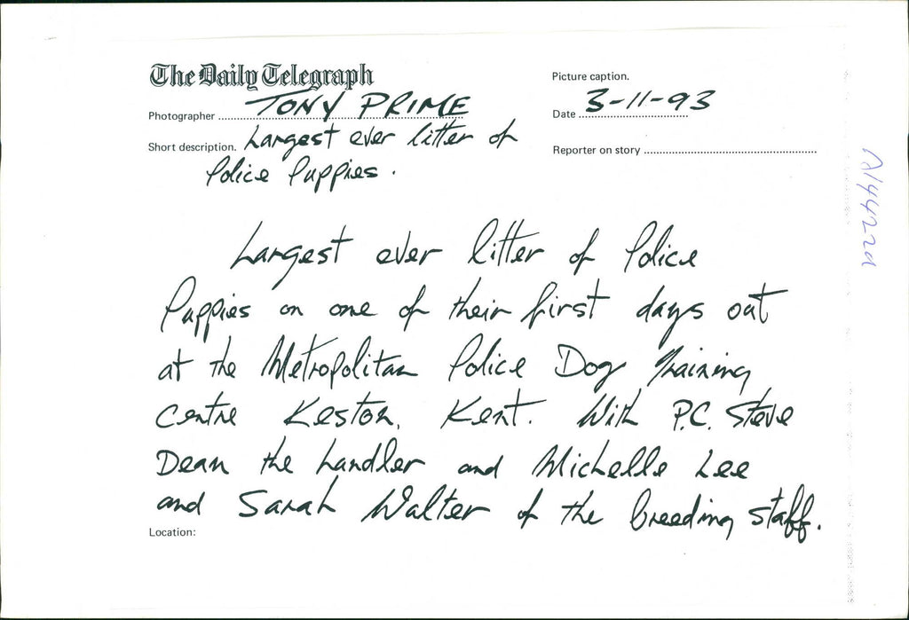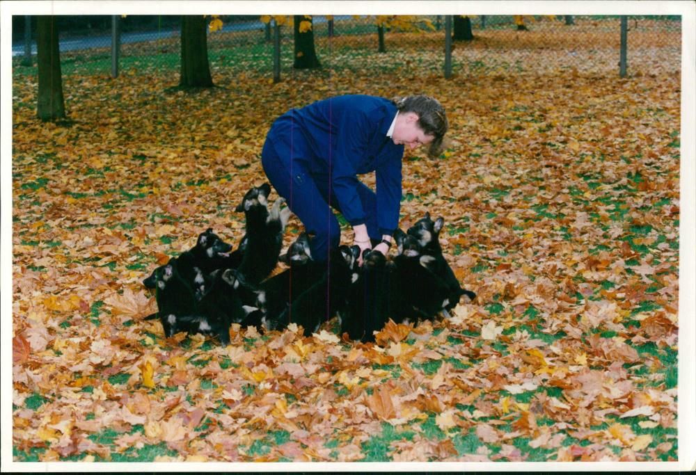 Largest ever litter of Police puppies on one of their first days out at the Metropolitan Police Dog Training center Keston Kent. Largest ever litter of Police puppies on one of their first days out at the Metropolitan Police Dog Training center Keston Kent.