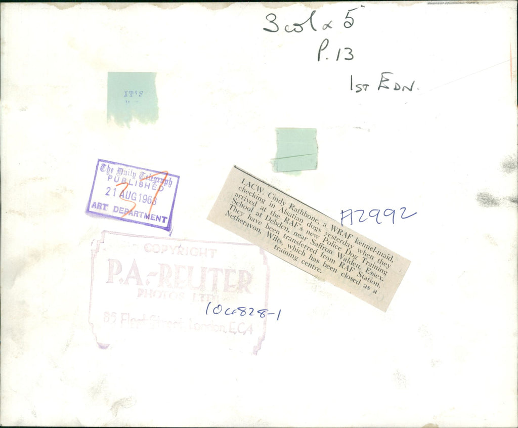 R.A.F a new police dog.cindy rathbone a wraf kennel maid. - Vintage Photograph