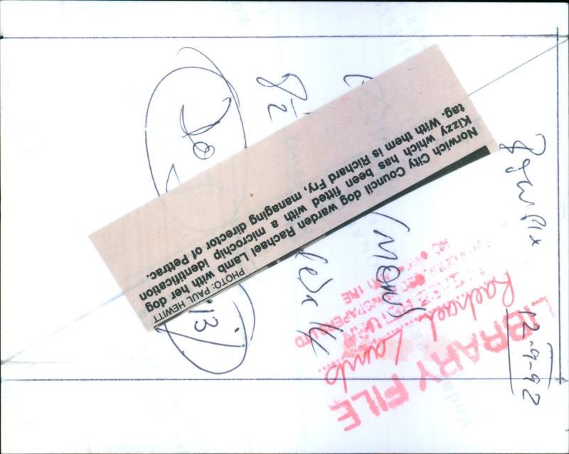 Norwich City Council dog warden Rachel Lamb with her dog Kizzy which has been fitted with a microchip identification tag. With them is Richard Fry, managing director of Pettrac. Norwich City Council dog warden Rachel Lamb with her dog Kizzy which has been fitted with a microchip identification tag. With them is Richard Fry, managing director of Pettrac.