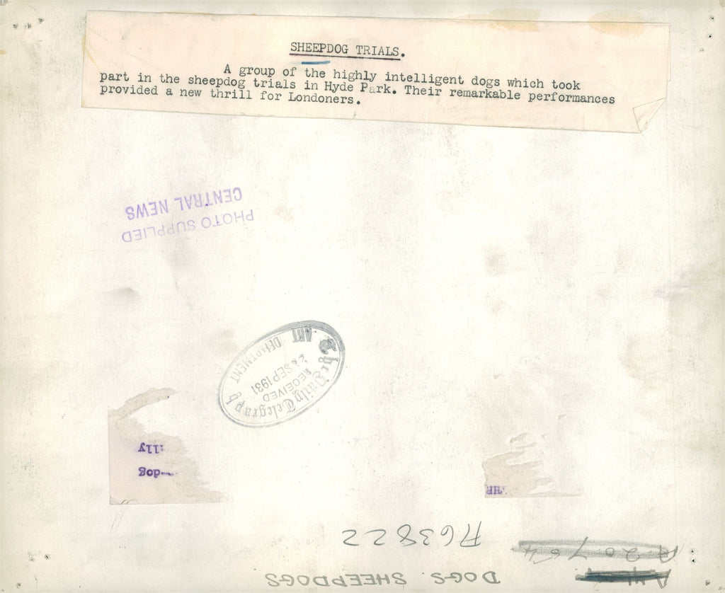 Sheepdog trials in Hyde Park, 28.09.1931. - Vintage Photograph