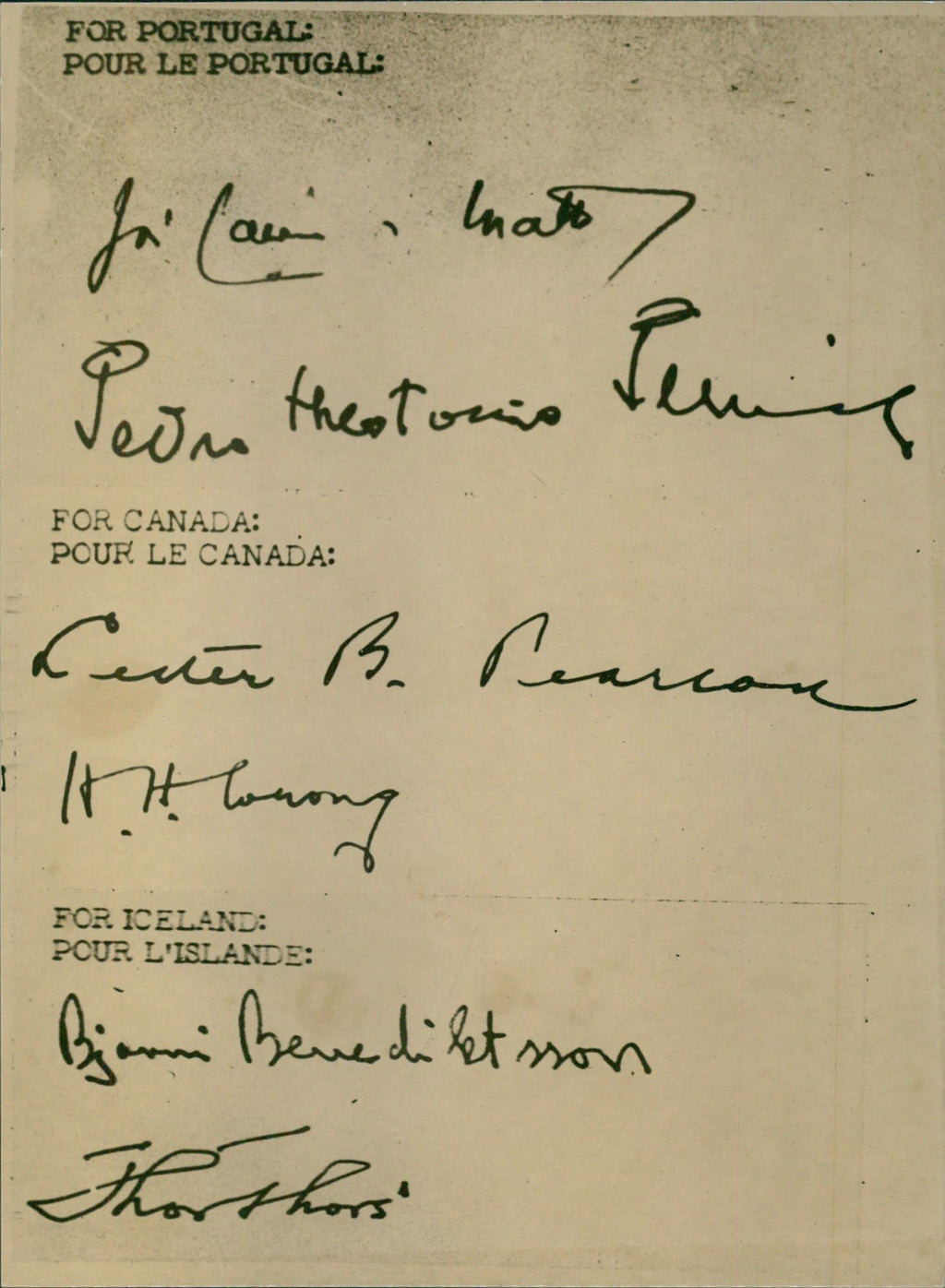 Signatures for Portugal, Canada and Iceland.