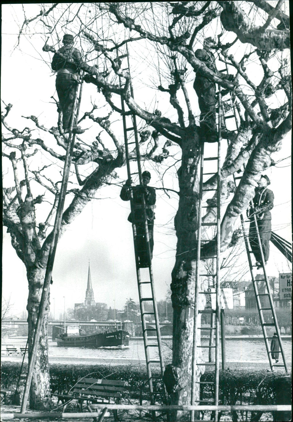 TREES IPFLEGESE GIA CONSTRUCTION IPF LEGESE Arbeiter beim Beschneiden der Bäume in Frankfurt.