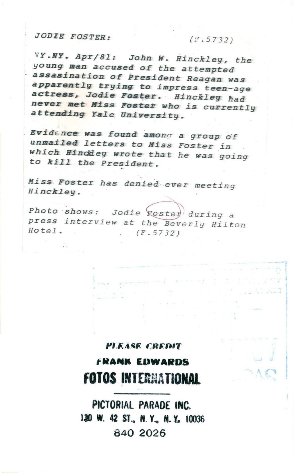 Actress Jodie Foster at a press conference at Beverly Hilton Hotel - Vintage Photograph